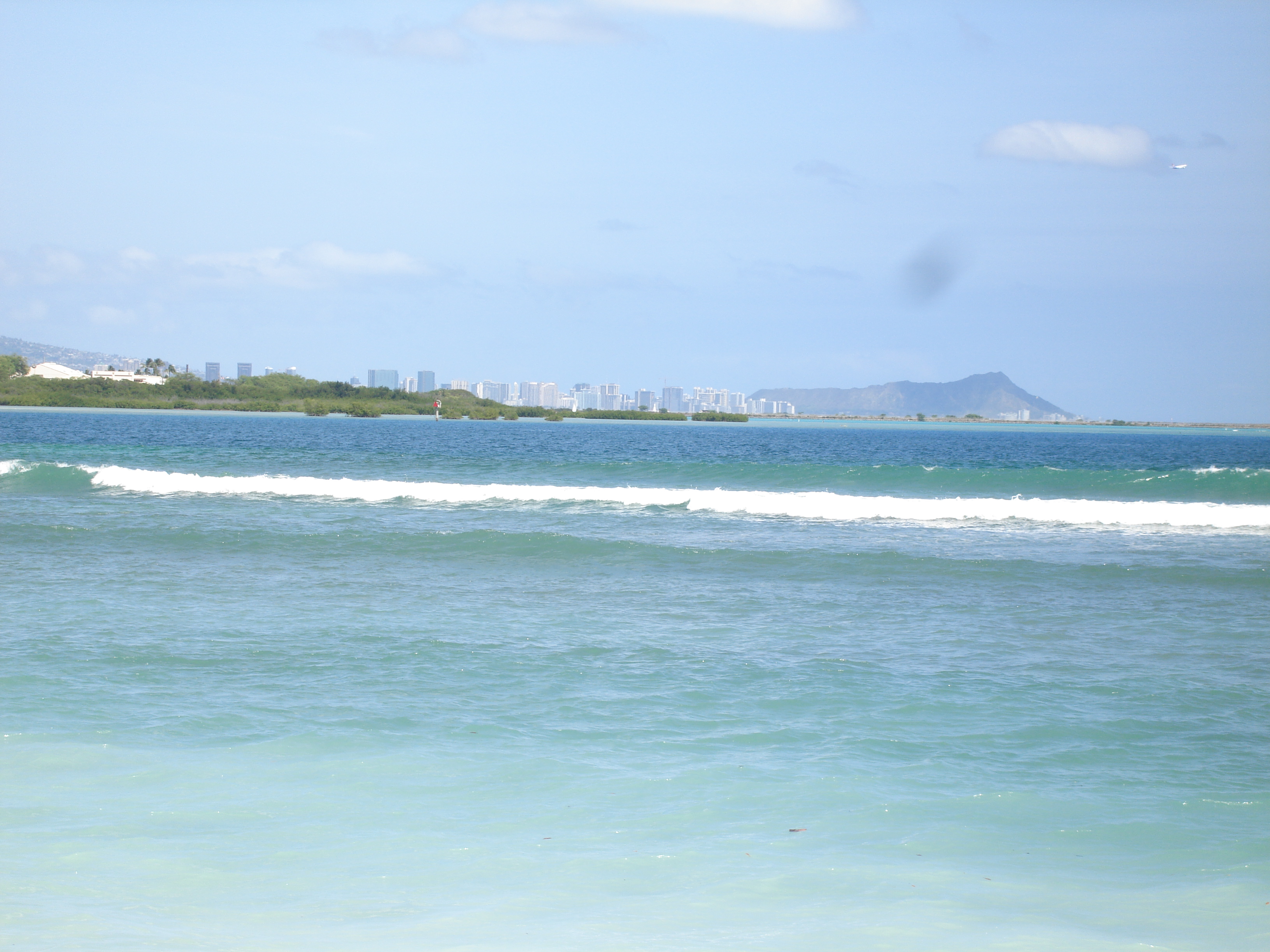 The view was varied; some planes taking off and landing at the airport or maybe a submarine making its way into Pearl Harbor… or the Honolulu skyline. (I prefer the Chicago skyline for buildings, truth be told, but for an island, this one is pretty good too. <wink>)